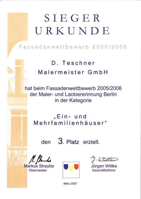 Achtung! Wir haben für diese Fassade den 3. Platz im Fassadenwettbewerb 2006/2007 erhalten.